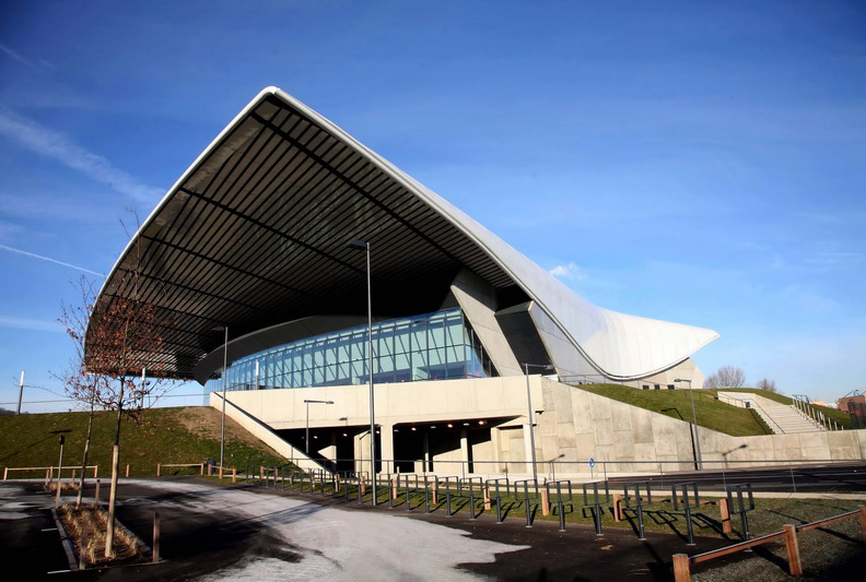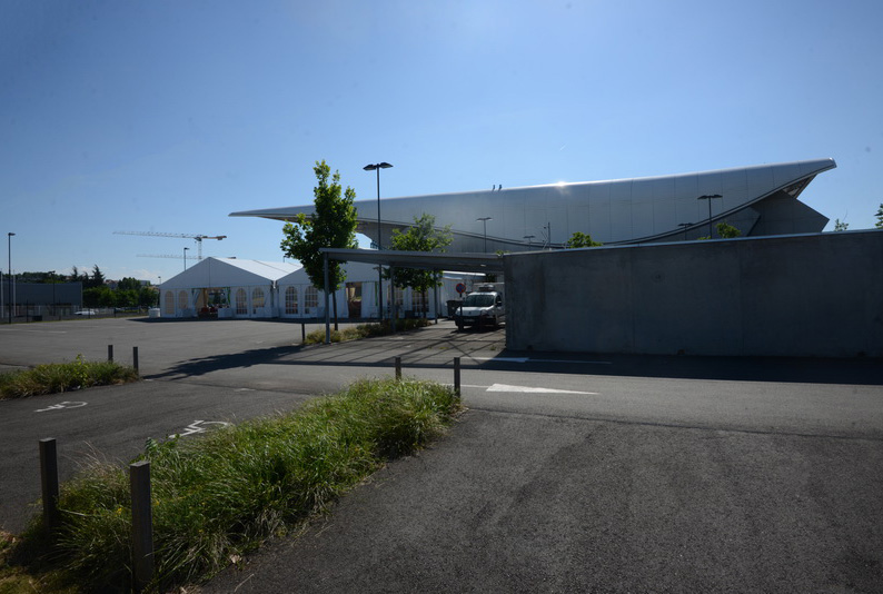 Sa casquette de 30m de porte-à-faux, qui protège le public, a été conçue selon la trajectoire du soleil : ce qui permet en hiver de réchauffer les espaces, et en été de garder la fraîcheur.