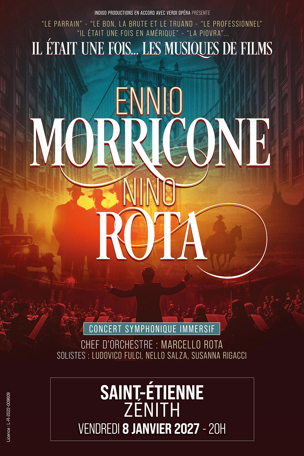 Sous la direction de Marcello Rota, chef d’orchestre de renommée internationale, les célèbres solistes Nello Salza (trompette), Ludovico Fulci (piano) et Susanna Rigacci (soprano), qui ont collaboré pendant plus de 30 ans avec Ennio Morricone avec plus de 500 concerts à travers le monde, interprètent des pièces magistrales du répertoire. Vivez les moments clés de leurs carrières exceptionnelles à travers les musiques de films de Sergio Leone (Le Bon, la Brute et le Truand,Il était une fois dans l’Ouest…), Francis Ford Coppola (Le Parrain…) ou encore Federico Fellini (La Strada).